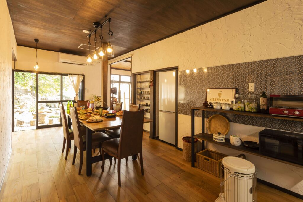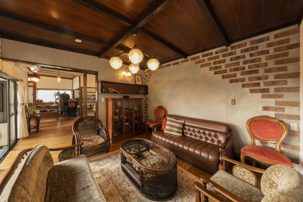 リビングはこだわりのレンガ壁で皆さんで集まって素敵な集合写真を。寝室は畳和室でお布団で寝て頂きますのでご家族で川の字で寝るのもなんだか懐かしい気分にさせてくれます。8名様以下程度がおすすめです!