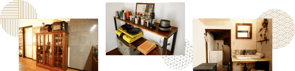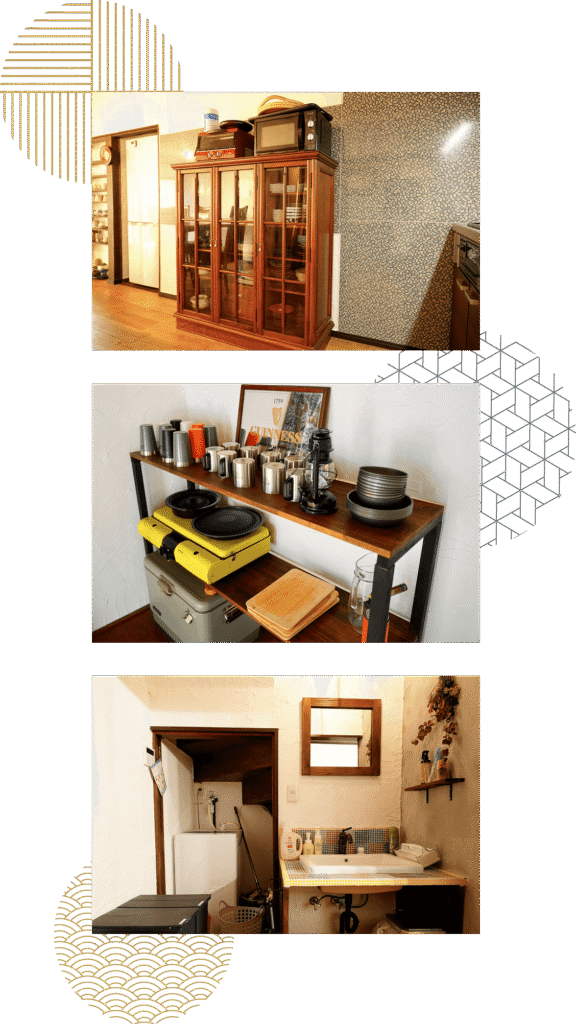 設備 | 冷蔵庫、電子レンジ、トースター、洗濯機(洗剤)、ケトル、炊飯器、カセットコンロ、電気グリル、ドライヤー |